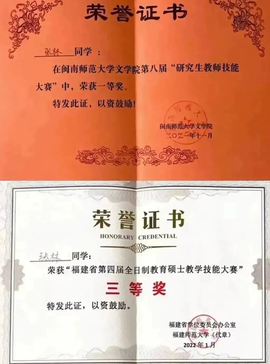 ◆2022年1月,获福建省第四届“全日制教育硕士教学技能大赛”三等奖