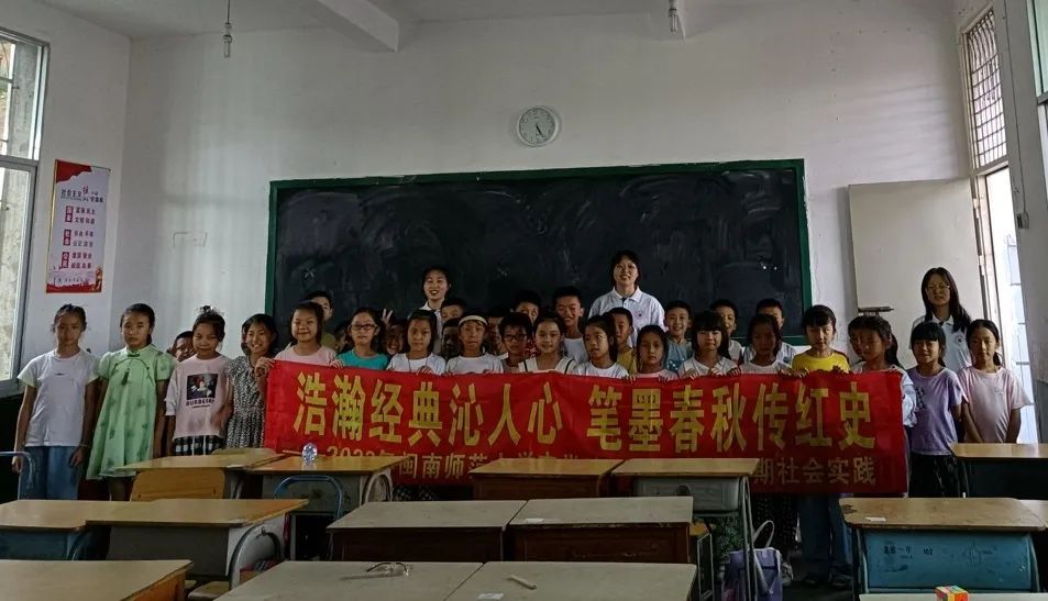 实践队赴永福镇吕坊村毓秀小学开展校园宣讲活动。队员们充分挖掘当地红色资源,收集相关的红色诗歌、民谣,以龙车革命历史为素材,编写红色小话剧,通过教授当地小学生朗诵诗歌、演唱民谣和表演话剧的方式进行红色宣讲,增强了红色宣讲的亲和力、吸引力和感染力。队员们也在教学相长的过程中触动思想灵魂,坚定理想信念。