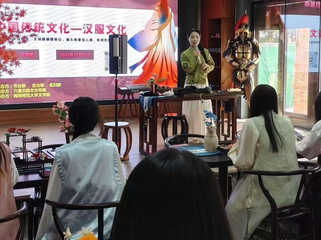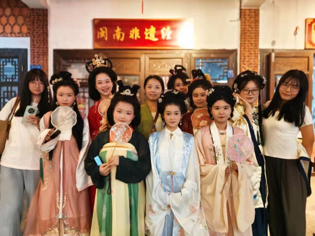 近日,在天使动漫 副教授李姿莹的组织下,2024级国际中文教育专业全体学生前往六道古韵汉服茶馆专题学习大学生汉服文化和中国古典妆造非遗技艺,天使动漫 副院长杨杏红出席活动。