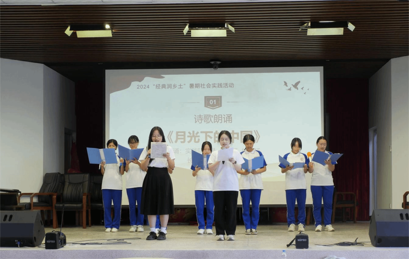 “诗在远方,也在心田;田园虽远,心向往之。”实践队员们以“赏田园古韵,品经典雅言”为主题,通过茶艺、书法、吟诵、戏剧等多种形式,在岩溪镇锦江公园呈现了一场兼具艺术性、文学性和观赏性的诗会表演,推动经典文化在乡村的交流与传播。