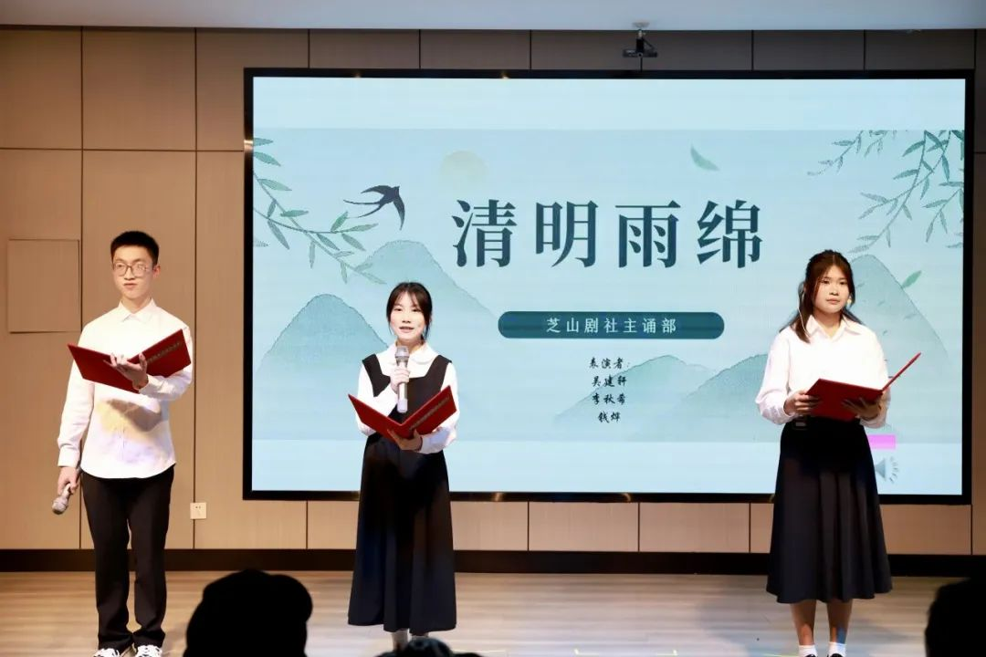芝山剧社主诵部朗诵带来《清明雨绵》,于绵绵细雨中缅怀先烈,传承革命精神。