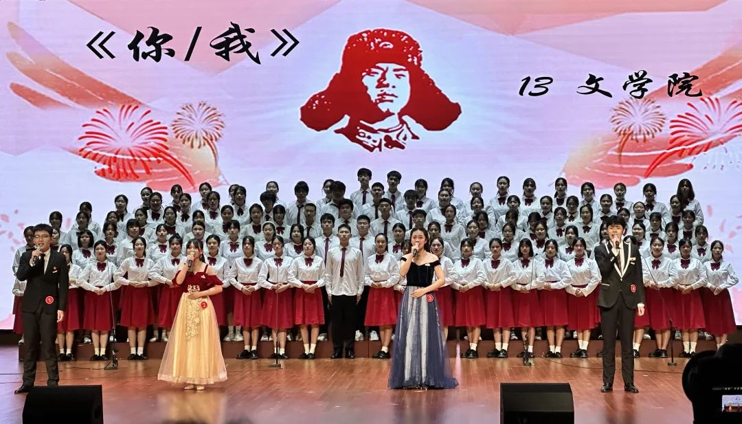 第三幕,诵读迎来高潮,火车抵达终点站,青年也踏上父辈口中的远方,四海互通,天涯比邻。父辈开辟的道路已至尽头,而青年奉献者的未来正在他的脚底。青年大学生用时代之声接力传承,雷锋精神历经岁月的沉淀,穿越时空的限制,愈发光芒四射。