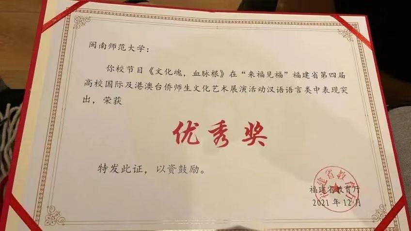 自律会策拓部干事,荣获台湾学生奖三等奖、福建省第四届高校国际及港澳台侨师生文化艺术展演活动汉语言类优秀奖等多项殊荣,并成功入围2023年全国港澳台大学生中华文化知识大赛全国二十强。