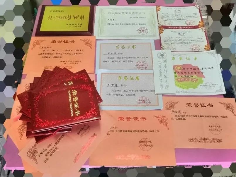 “三好生”称号,曾多次被评委校优秀团员、院优秀学生干部;积极参加第二课堂活动,在校两赛中多次获得诗词创作、校友访谈、教学评论、影视评论特等奖及一等奖,获得两赛“十佳选手”称号;积极提升教学能力和教师素养,获得校“优秀实习生”称号。2022年以总评第一名的成绩被温州大学中国古代文学专业拟录取。