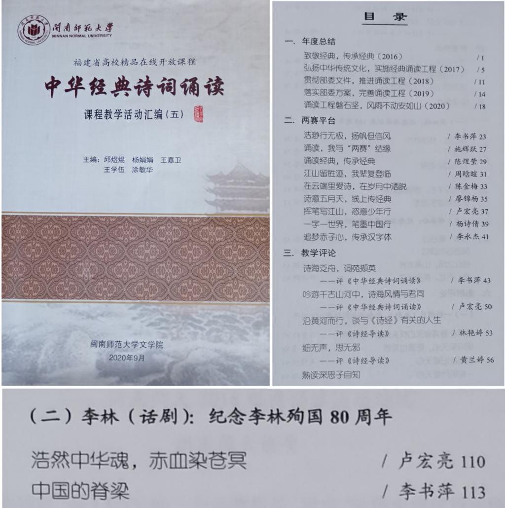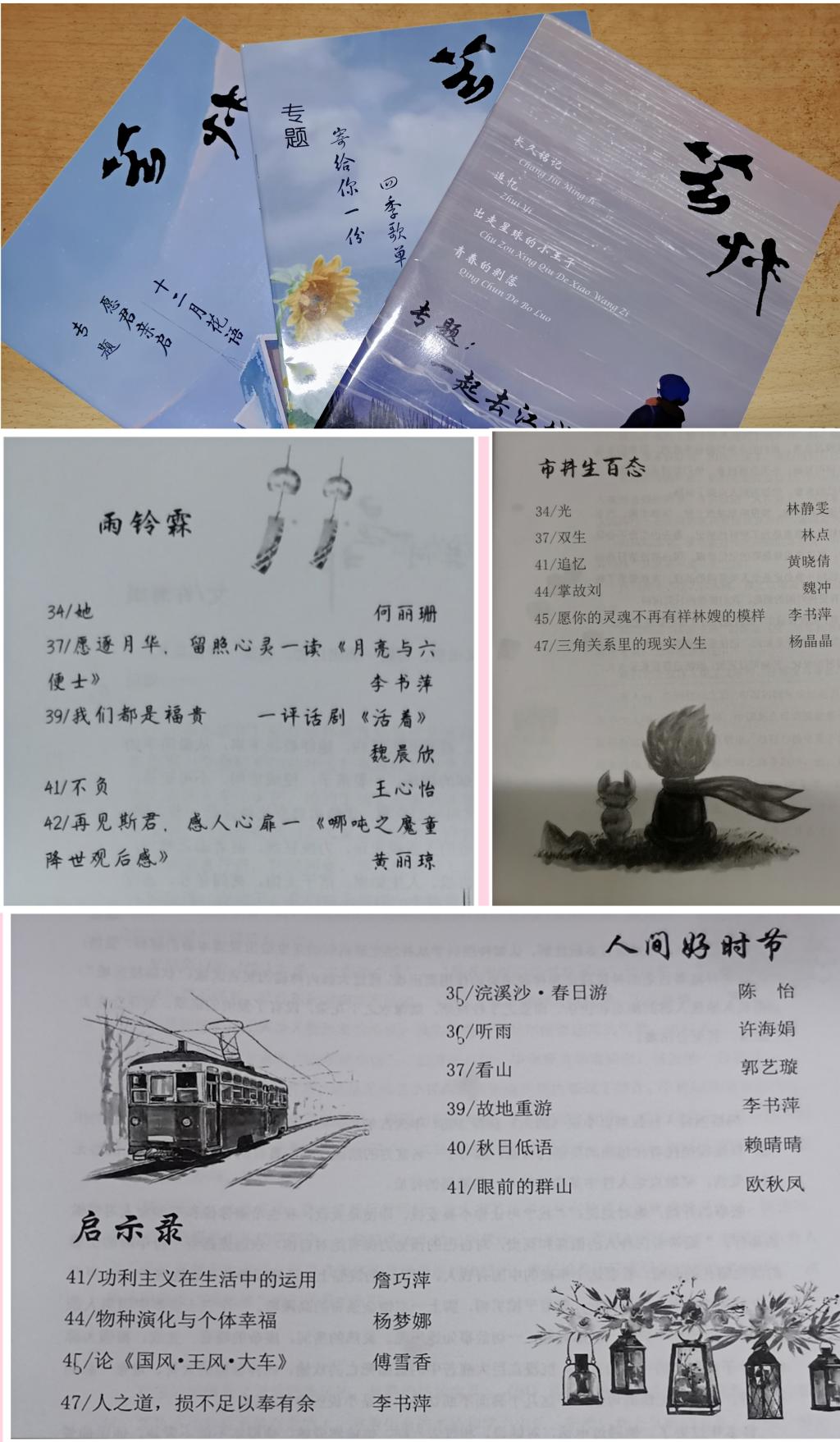 ,也让我得以在俗世的熙熙攘攘中寻得一方净土暂且小憩。在这一方被文学深深浸染的天地间,我也在努力地耕耘着,尝试更多的可能。《芗草》和《它山》的包容,让我得以将日常的思索付诸笔尖。一场又一场的诵读诗会,让我得以锤炼诵读技艺,从而更加从容,更加自信,更加坚定地走向远方。李林剧评创作的过程,唤醒了我心中的家国情思,提醒了我肩上的重任,让我深刻地体会到英雄精神的内涵。而诗词大会的赛场,则让我得以一睹中华文明的灿烂文化,于诗海中泛舟,于词苑中撷英......通过这些活动,我锻炼了作为师范生应该具备的读写能力。当然,我深知,要成为一名合格的师范生,这些努力还远远不够。所以,在课余的时间,我也扎实地训练“三笔一话”等教师必备技能,参与相关的志愿活动,认真学习教学理论,努力向“知识传授者”靠拢。