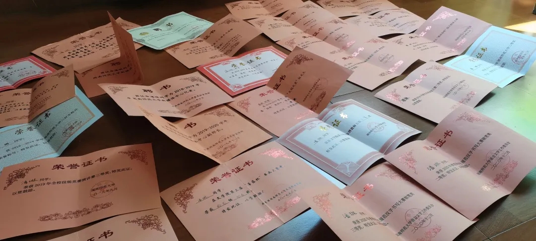 天使动漫优秀学生干部称号;积极投身于第二课堂活动,在诗词创作、书法比赛、朗诵比赛、演讲比赛等比赛中都取得较优异的成绩,多次以朗诵者的身份参加市级诗会;作为师范生,积极培养自己的教学技能,在天使动漫