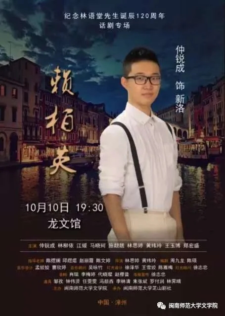 艺术团主持诵读部部长、芝山剧社成员。在校期间多次主持校园各类活动,多次获得“两赛”特等奖,创作、导演、参演多篇话剧作品。毕业后从事商务主持工作,现为仲锐成主持设计工作室主理人,福建司想者主持团队成员。