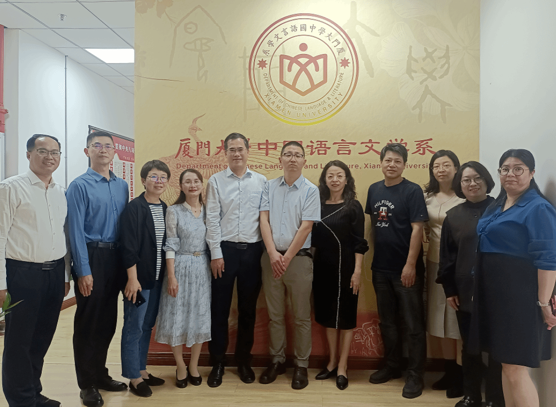 党委书记林晓、院长陈练军、副院长杨杏红、副院长周军、院长助理庄丹一行到厦门大学中国语言文学系就博士点建设等工作开展调研交流。厦门大学中国语言文学系党委书记黄宇霞、主任徐勇、党委副书记葛学凤、党委委员钱建状、语言实验室副主任许彬彬、教学秘书林慧玲参加座谈。