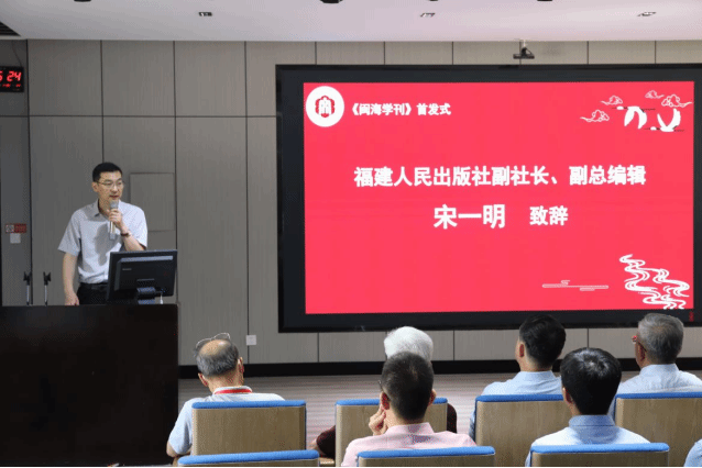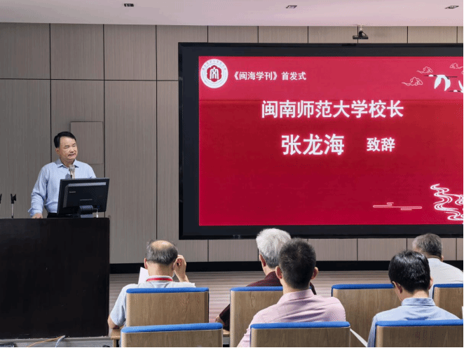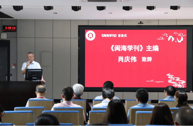 院长陈练军主持。张龙海代表主办方向与会嘉宾致以热烈的欢迎和诚挚的感谢。他强调,《闽海学刊》正式创刊首发,是我校办学发展历程中的一件喜事,更是我校学科建设和学术研究的一个重要里程碑,标志着我校在闽海文化研究的道路上又迈出了坚实的一步。他相信《闽海学刊》的创刊将为广大学者搭建一个开放包容、思想碰撞的学术平台,进一步挖掘和展示闽海文化的历史内涵和时代价值,为我国文学学科建设、闽南文化繁荣发展注入新理念、新动力。《闽海学刊》主编肖庆伟详细介绍了学刊的创刊宗旨与定位。他指出,学刊以“闽海”为名,既是对闽南文化、海洋文明的历史钩沉,亦是对海峡两岸学术共同体的现实呼应。《闽海学刊》将以“立足八闽、广对四海”为首要办刊理念,致力于打造具有地域视野和世界眼光的学术平台。福建人民出版社副社长、副总编辑宋一明从出版角度展望学刊发展前景。他提出,出版社将持续深化与校方的合作交流,为学刊配备卓越的编辑人才队伍,不断创新出版思路与模式,积极探索闽南文化研究的新路径。