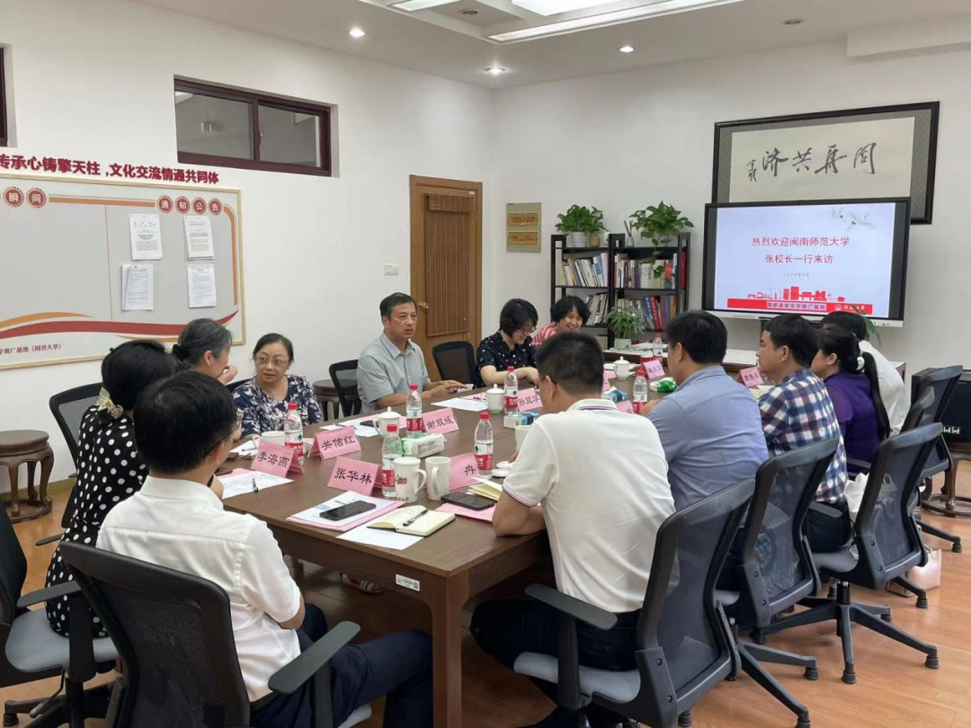 )主任张龙海率队,历史地理学院院长王建红,教务处副处长杨娟娟,学科建设与研究生工作处副处长刘冉,物理与信息工程学院副院长张华林,计算机学院副院长周豫苹一行走访国家语言文字推广基地(同济大学)。这是继今年3月两校国家语言文字推广基地签署合作协议后,第二次开展校际交流活动。
